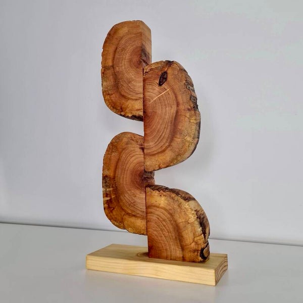 Ik maak het van 4 houten schijven met prachtige nerven en natuurlijke vormen.